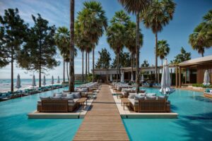 A new trendy beach club under a modern beach club concept. The place sits for cuisine from the Mediterranean that stands out with drinks that are superb and dining options near the pool. The spot is ideal for either a cozy night out alongside friends or a romantic evening close to the sea.